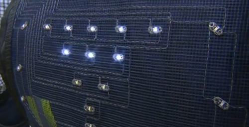 Mặt lưng chiếc áo thông minh ‘Safe Ride’ có trang bị hệ thống đèn LED cảnh báo