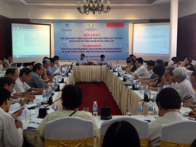 Ngày 30/09/2014, tại Hà Nội, Liên hiệp các Hội Khoa học & Kỹ thuât Việt Nam (LHHVN) đã tổ chức Hội thảo “Các giải pháp chính sách hỗ trợ phát triển các tổ chức khoa học và công nghệ ngoài công lập”. Tham dự Hội thảo có ông Lê Bộ Lĩnh – Phó Chủ nhiệm Ủy ban KHCN & MT của Quốc Hội, ông Trần Việt Hùng - Phó Chủ tịch LHHVN, đại diện Bộ KH&CN, Bộ tài chính, Bộ Nội vụ, Viện Chiến lược CS KH&CN, Quỹ NAFOSTES, Dự án FIRST, tổ chức khoa học và công nghệ trực thuộc LHHVN, Hội ngành toàn quốc, một số LHH địa phương và các Đại sứ quán tại Hà Nội.