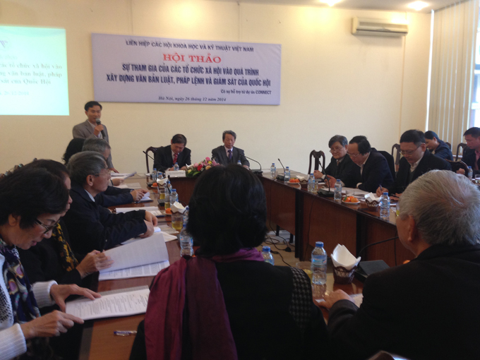 Ngày 26/12/2014, tại Hà Nội, Liên hiệp các Hội Khoa học và Kỹ thuật Việt Nam (Liên hiệp Hội Việt Nam) tổ chức Hội thảo “Sự tham gia của các tổ chức xã hội vào quá trình xây dựng văn bản luật, pháp lệnh và giám sát của Quốc hội. TS Trần Việt Hùng – Phó chủ tịch Liên hiệp Hội Việt Nam và TSKH Phan Xuân Dũng – Chủ nhiệm Ủy ban Khoa học, Công nghệ và Môi trường chủ trì hội thảo.