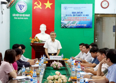 Sáng ngày 26/03/2019, Liên hiệp các Hội Khoa học và Kỹ thuật tỉnh Quảng Ngãi đã tổ chức buổi Tọa đàm tư vấn, phản biện và giám định xã hội đối với Đề án “Thành lập thị xã Đức Phổ và các phường thuộc thị xã Đức Phổ, tỉnh Quảng Ngãi”. Ông Lê Quang Thích – Chủ tịch Liên hiệp Hội chủ trì tọa đàm. |