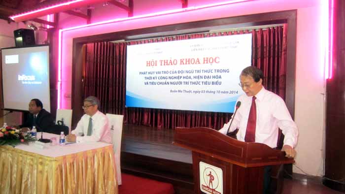 Hội thảo Khoa học “Thực trạng và giải pháp nâng cao tính đoàn kết, phát huy vai trò của đội ngũ trí thức trong thời kỳ CNH-HĐH và tiêu chuẩn của người trí thức, trí thức tiêu biểu” vừa được Liên hiệp các Hội Khoa học và Kỹ thuật Việt Nam phối hợp với Liên hiệp Hội tỉnh Đắk Lắk tổ chức ngày 3/10/2014 tại thành phố Buôn Ma Thuộc.